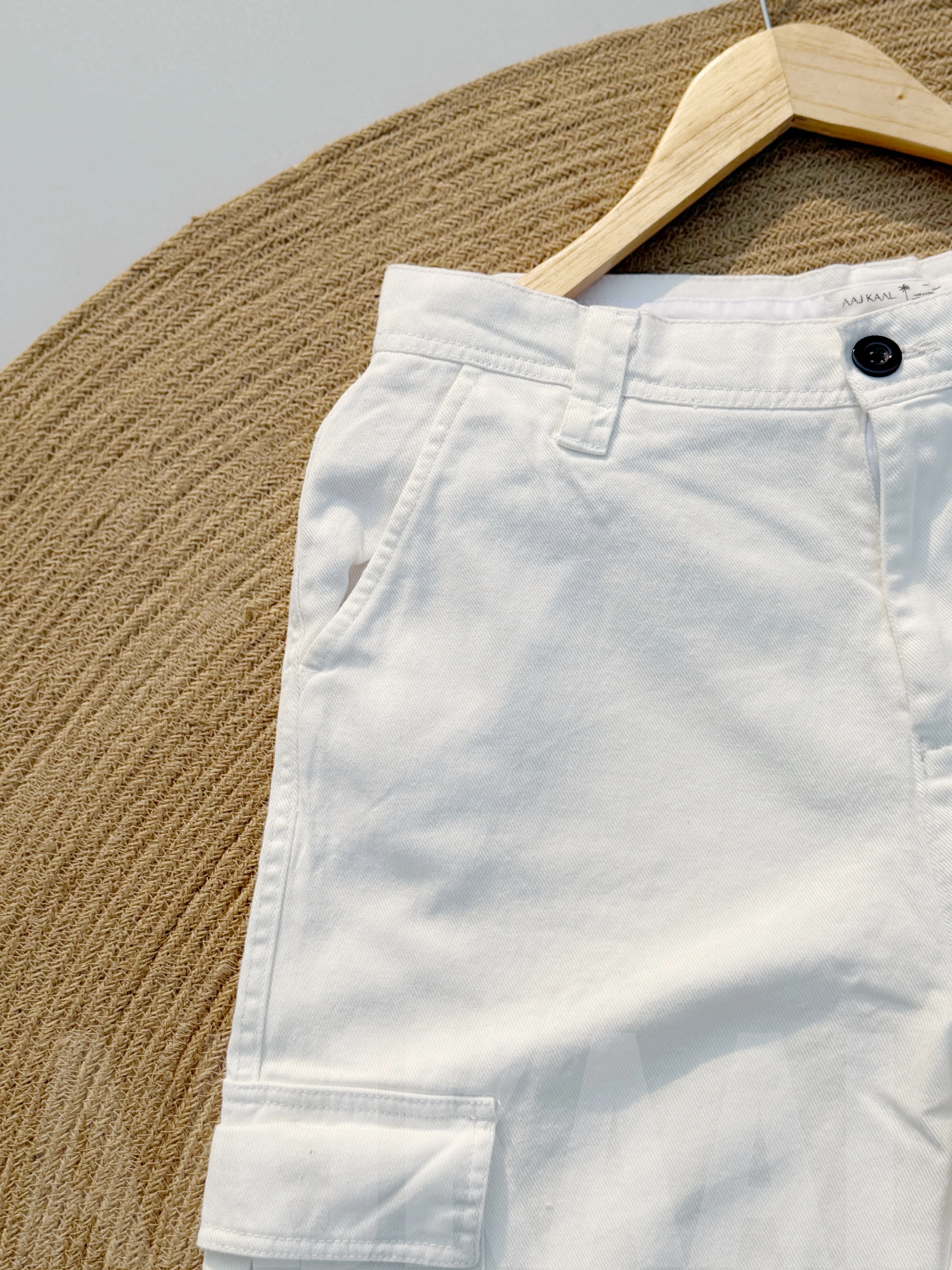 6 Pocket White Gabardine Cargo Pant